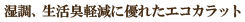 エコカラットは、室内の湿度が高くなると湿気を吸収し、湿度が低くなると湿気を放出する調湿機能を備えています。