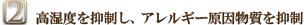 雨の日のジメジメや窓の結露を抑制するだけでなく、過乾燥を抑え、肌やノドにやさしい室内環境をつくります。