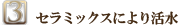 更に、トルマリンセラミックス、遠赤外線放射セラミックス、麦飯石セラミックスの3種で高品質な活水を精製します。