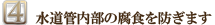 水道管内部には、赤サビや砂、土などが付着していることがあり、それらが剥離して屋内に混入した場合、水質の悪化や住宅設備の故障の原因となります。